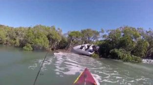 Ein Fischer in einem Kajak und fand eine schöne ruhige Ecke in Ross Creek River in Queensland, Australien Fisch. Leider, Moment der Ruhe war kurz, als ein Kreuzer kam mit [...]