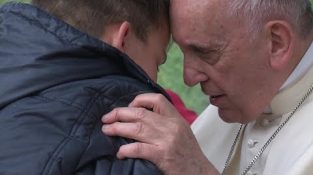 Papst Francis tröstet einen Jungen, der fragte, ob sein ungläubiger Vater im Himmel