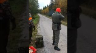 Ein Jäger in Finnland nicht ein Kaninchen zu erreichen, die nicht eingeschüchtert und läuft auf ihn.