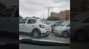 Eine Frau in Spanien versucht, ihr Auto zu parken, aber es scheint sehr schwierig,. Warum tut;