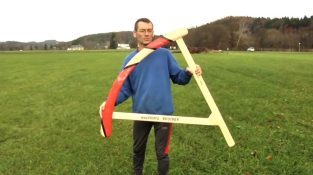 Österreicher Gerhard Walter fertigt großen Bumerang, die eine Reihe von sogar 70 Metern erreichen können.