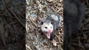 Zwei Eulen machen lustige Gesichter vor der Kamera.