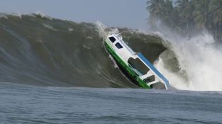 In der Insel Nias, Indonesien, ein Seefahrzeug ist im Wasser ungovernable nachdem der Sturm zuvor den Anker Schnitt. Dann, eine riesige Welle verzehr.