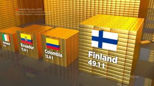 Vergleich von Goldreserven in verschiedenen Ländern der Welt in einer dreidimensionalen Animation, nach Angaben von Handel Economics.