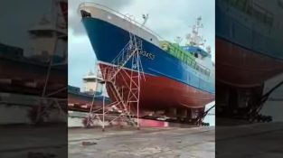 Am Donnerstag, den 7. März 2019, Französisch Fischereifahrzeug Lumian war in Reparatur im Dock von Oza in A Coruna, Spanien, wenn die Sprituosenläden, die zurückgezogen gehalten. Der Behälter 34 Meter Länge [...]