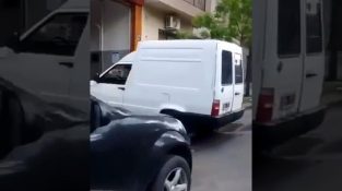 Ein Mann aus Argentinien, murrte über unvorsichtige Fahrer Parkplatz in einer Straße. horizontal, vertikal, verkehrt herum…