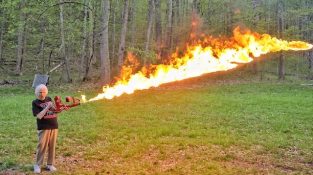 Ein junger Mann machte den Fehler, mit einer Schrotflinte das Privateigentum eines Mannes zu betreten. Eine Skizze von Gus Johnson, Satirisierung des Einsatzes von Waffen in Filmen.