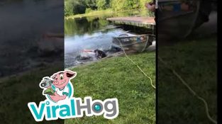 Ein Mann schießt, um einen Hund am Angreifen zu hindern