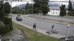 In Chilliwack, Kanada, Ein Mann findet den Dieb, der ein Fahrrad von seinem Haus genommen hat.
