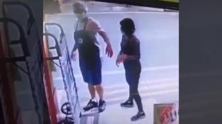 Ein junger Mann steckte seine Hand irgendwie in einem hohen Glas in einem Geschäft fest. Eine Szene, die seinen Freund besonders unterhält, wer nimmt es auf Video auf.