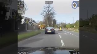 Im November 2020 in Birmingham, England, ein BMW i8 Auto überholt den Stau von der Standspur. Das Auto fährt an einem Streifenwagen vorbei, und der Polizist folgt ihm, um zu bestrafen [...]