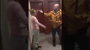 Zwei Gehörlose kämpfen im Flur eines Mehrfamilienhauses.
