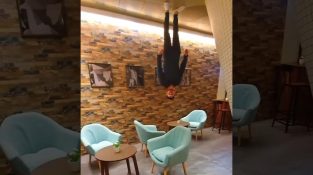 Im Themenpark Garden Glow in Dubai, ist das Upside Down Cafe, ein Café, in dem alles Kopf steht.