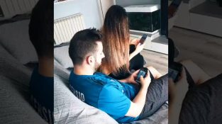 Ein Mann merkt, dass seine Freundin ihn verkleidet beobachtet, wie er andere Frauen auf Instagram sieht.