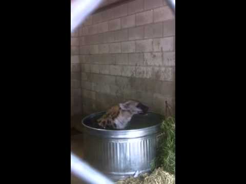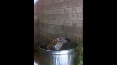 In the zoological park of Oakland in United States, the Harley the hyena enjoys swimming platsourizontas water.