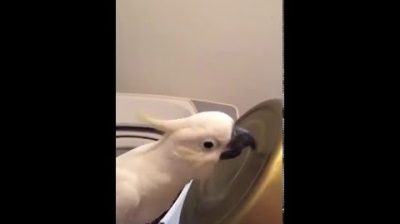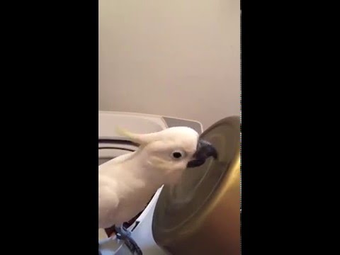 Before being joined by his buddy, a cockatoo opens a trash can placed on the edge of a road to...