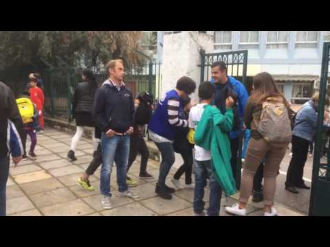 With applause greeted the Greek students of 67th elementary school Xirokrini, refugee children who spent the afternoon the threshold of their school, to start their lessons.
