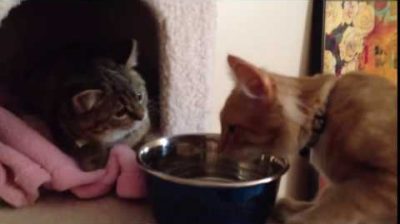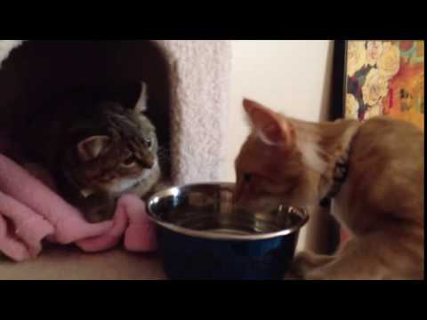 Cat does not want to share a bowl of water – gets karma