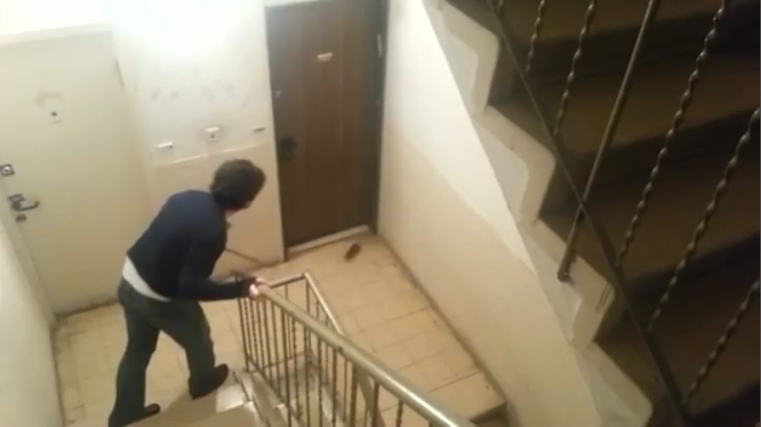 Rat attacks furious in occupant flats that tries to pull him out of the building.