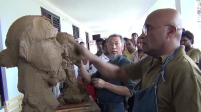 The first sculptor with glasses is Professor Sarath Chandrajeewa from University of fine and representational art in Sri Lanka, and the second with the beard is Cao Xu, Professor Chang from the Central Academy of fine arts in Beijing, China..