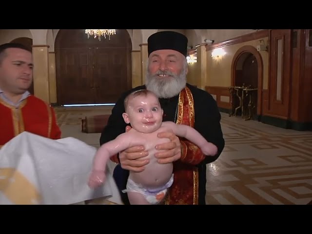 To increase the birth rate in the country, Patriarch has promised to personally baptize every third child of a family. In the video, one can see the technique, which consists of the immersion of the head and the baby's feet quickly to agiasma. The Patriarch baptized 780 children that day.