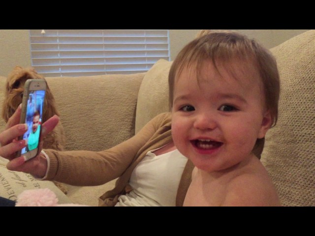 Two babies have a conversation via FaceTime videoconferencing application. While mothers hold their mobile phone, babies take the opportunity for a short dialogue in their own language.