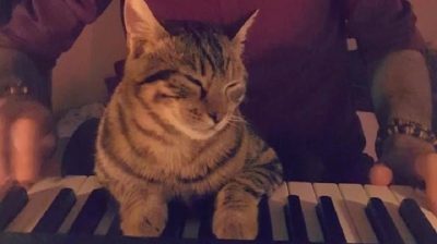 Turkish musician Sarper Duman plays one of his compositions on the piano adorable cat friends. The small animal appears to be completely enchanted by soft music and rubbed with love to his boss, before lying on back on with closed eyes buttons.