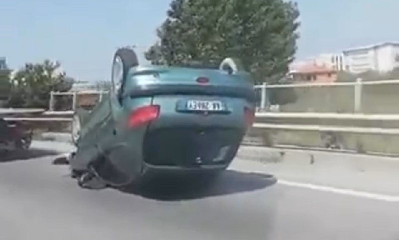 The scene was filmed by a motorist in a road in Albania. The car fell from the crane, but the driver did not seem to be touched and very. Continues to drive the Peugeot crawling the roof on the asphalt. Until it reaches the shop might as well have turned into convertibles.