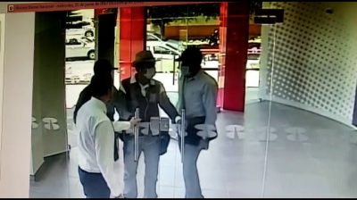 An official of Banorte Bank in the city of Guadalajara in Mexico, He found a technique to stop the robbers. Three masked passed the outer door of the bank in order to rob. Fortunately, an employee had the good idea to immediately lock the inner glass door. The three robbers make changes immediately, and the shot looks like a scene from a comedy.