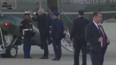 President Trump Replaces Blown Off Marine’s Hat then Blows off Again