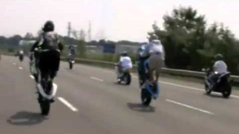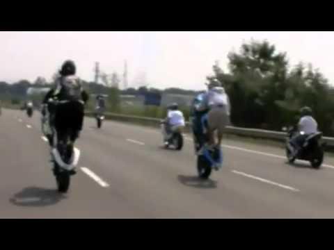 A man moves sousa on a motorcycle, ending up colliding with a car coming from the opposite direction...