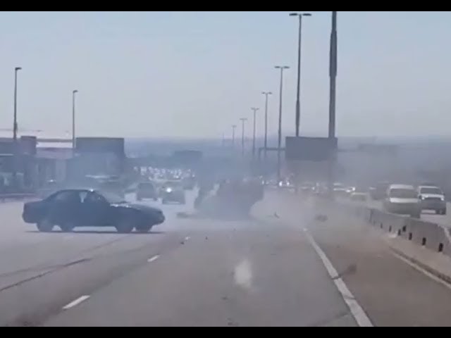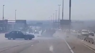 On the highway N1 in Johannesburg, South Africa, a driver causes an accident by hitting a car and then tries to escape. Other drivers saw the scene after him and forced him to stop.