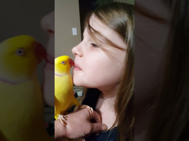 A very cute parrot in Louisiana United States, He has learned from its owner to give kisses and mimic their sound.