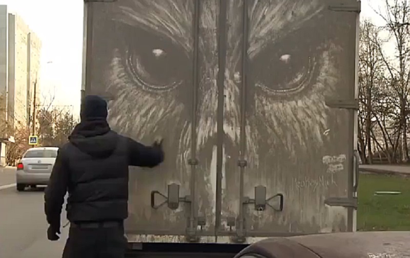 The Nikita Golubev is an artist from Moscow using dirty trucks and cars as canvas, and creates beautiful paintings on them with a brush or fingers.