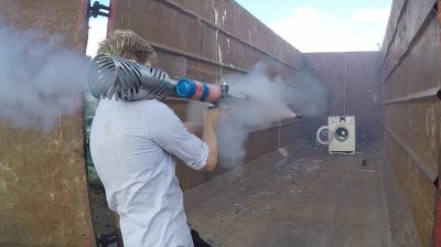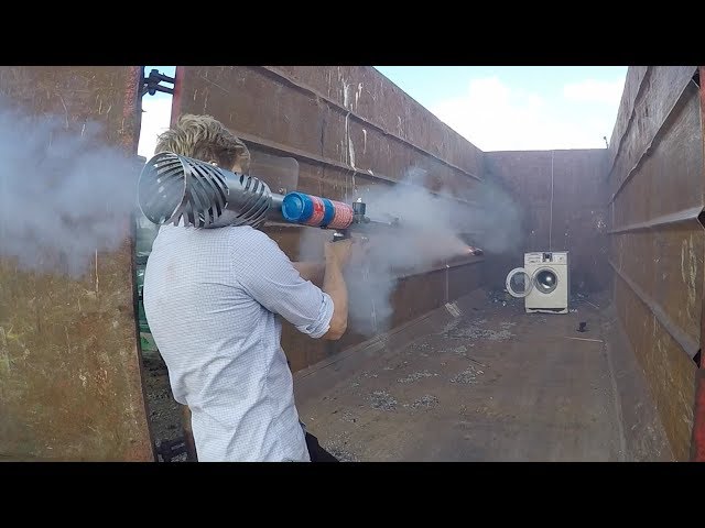 The Colin Furze trying to destroy a highly resistant washer, with fireworks and firecrackers.