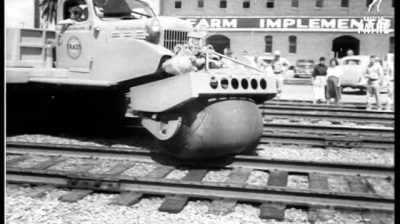 1953 footage of a strange US military vehicle – the Rolligon – that can move easily over rough terrain.