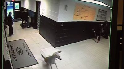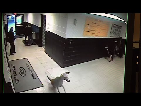 A deer darted through the halls of a school in rural Mississippi Wednesday, startling pupils arriving for the day. Surveillance cameras caught the deer racing and tripping before sliding out the door of Enterprise Middle School. (Nov. 30)