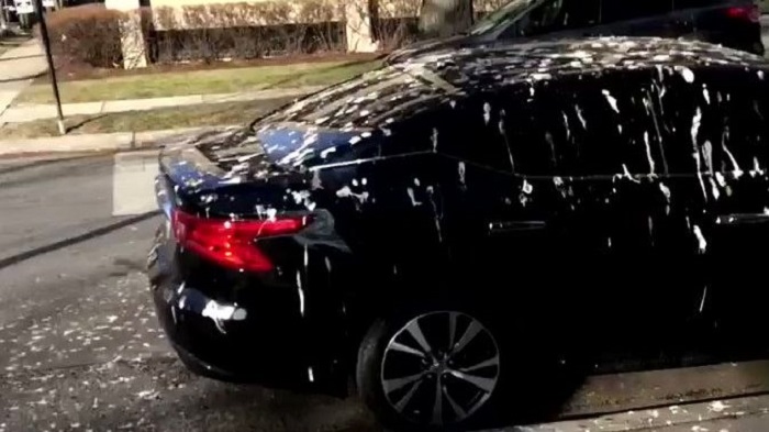 On the night of 22-23 December, a storm of bird droppings hit a street in Chicago. The cars parked in a street are completely covered by bird droppings. Koutsoulothyella!