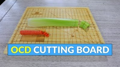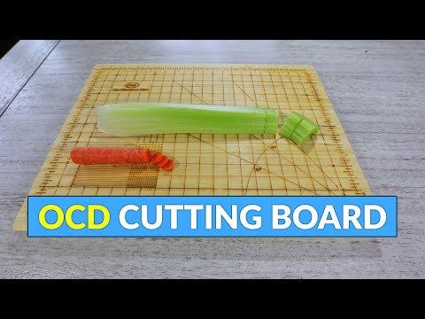 This is the OCD Cutting Board, it has different sized grids to cut with extreme precision. Some cutting grids are extra tiny, and other grids are a bit bigger. You can get perfect julienne or dice cuts, perfect measurements, perfect angles, and even cut perfect cubes. The OCD cutting board is made from bamboo wood, and is perfect for any perfectionist chef.