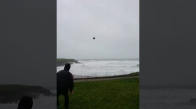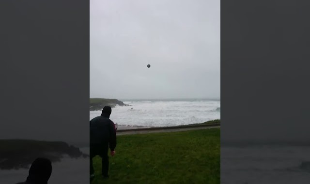A man kicking a ball against the strong wind, and that returns like a boomerang.