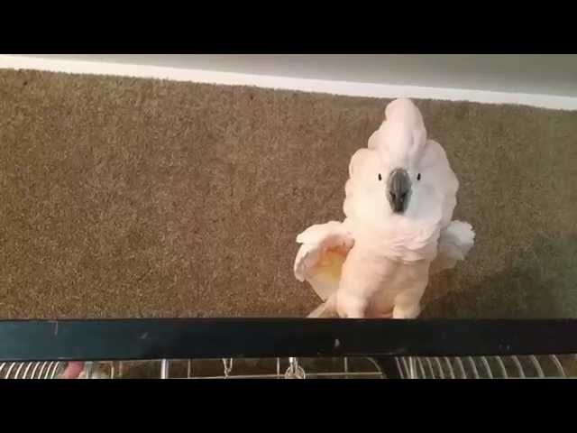 A man hears some 'French' from his parrot, when he asks to return to cage.