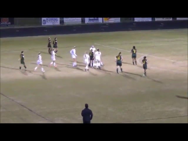 Excerpt from school football championship match between high school Pinecrest and Pine Forest in United States, 2016. In the last phase of the race, the goalkeeper Pine Forest tries to stop by all means the aggressive opponents who comes alone to the finish. Note that the attacker was already in an offside position, so the goal will not count.