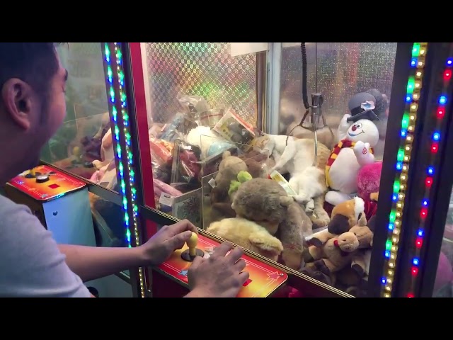 In a caliper game in Dubai, a cat is lying comfortably between plush dolls.