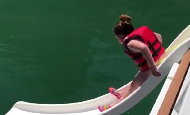 Trying to make a slide from a yacht in the sea, this girl will face an unusual problem.