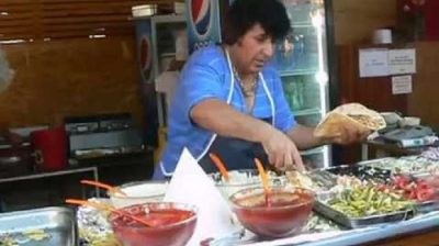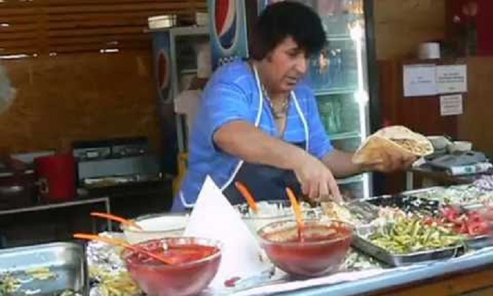 In town Costineşti Romania, a fun retailer serves some exuberant kebab guests.