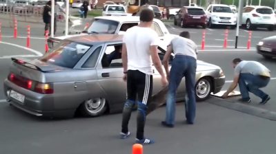 Passengers of a very depressed car in Russia immediately catch job, when they see a bump in the road. To have such a stylish LADA has its negatives!