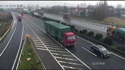 On 14 March 2018 to the highway between Changchun and Shenzhen City in China, an unconscious driver stopped in the middle of the road after losing its output. Two trucks coming rapidly fail to stop and overturned. The driver then leaves the scene as if nothing happened.