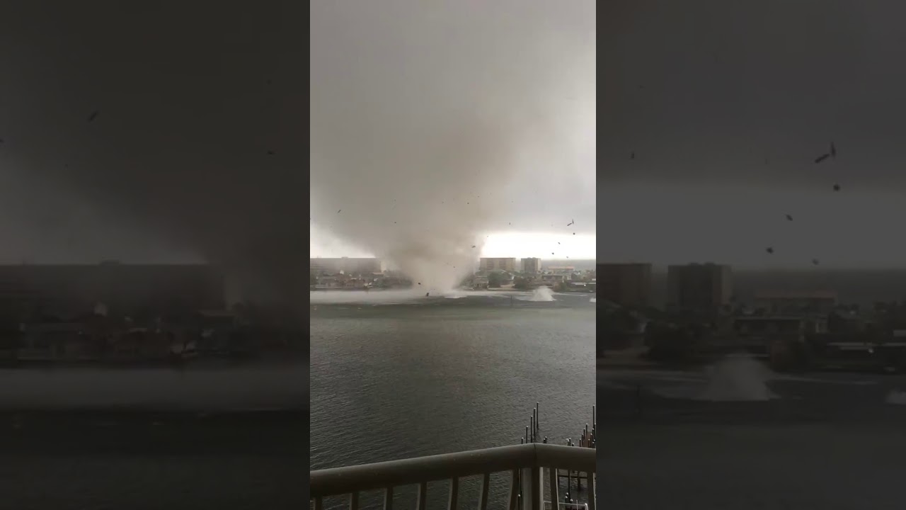 On Sunday April 22, 2018, a powerful typhoon passed from the coastal town of Fort Walton, Florida, causing serious damage. Someone recorded the scene from the balcony of his house.