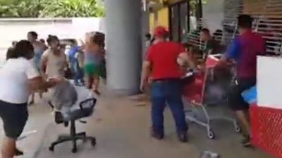 During riots in Venezuela, Some opened the entrance of a supermarket and began to plunder. Some honest citizens to put the thieves and returned the stolen items in the supermarket.