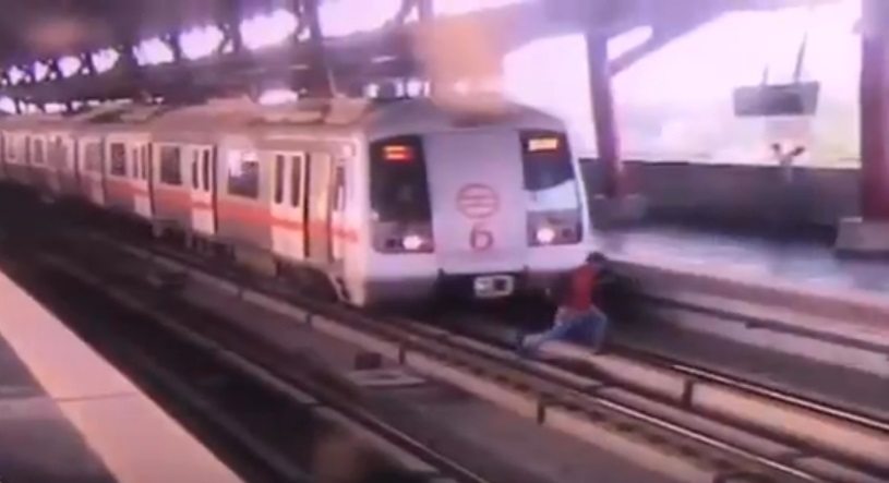 Despite the little rescued a 21 year old in New Delhi, India, when he attempted to cross the subway rails in Shastri Nagar station as the train started.